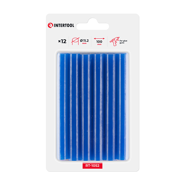 Характеристики Комплект голубих клеєвих стержнів 11.2мм*100мм, 12шт. INTERTOOL RT-1052 код товару RT-1052