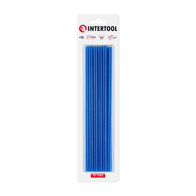 Характеристики Комплект голубих клеєвих стержнів 7.4мм*200мм, 12шт. INTERTOOL RT-1055 код товару RT-1055