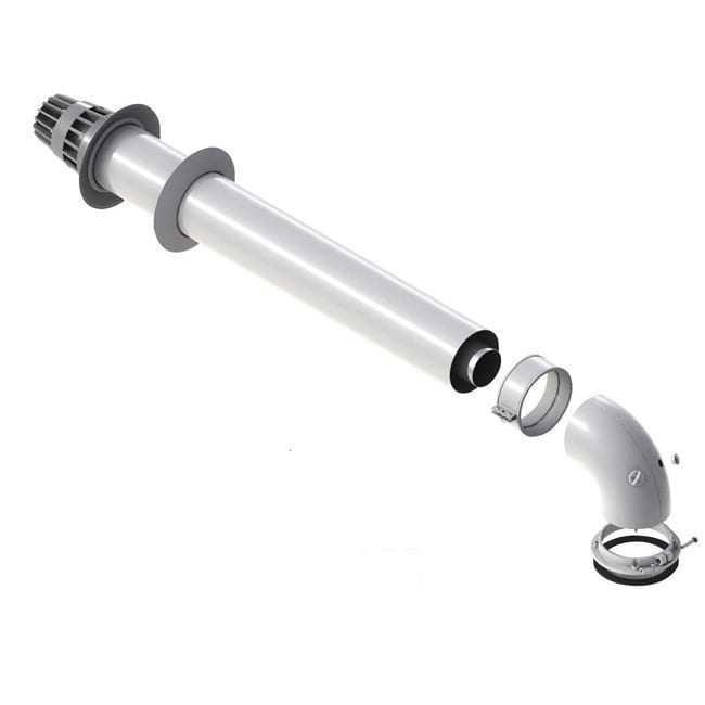 Коаксіальний горизонтальний комплект: відвід 90º + подовження 810 мм, Ø60 / 100.