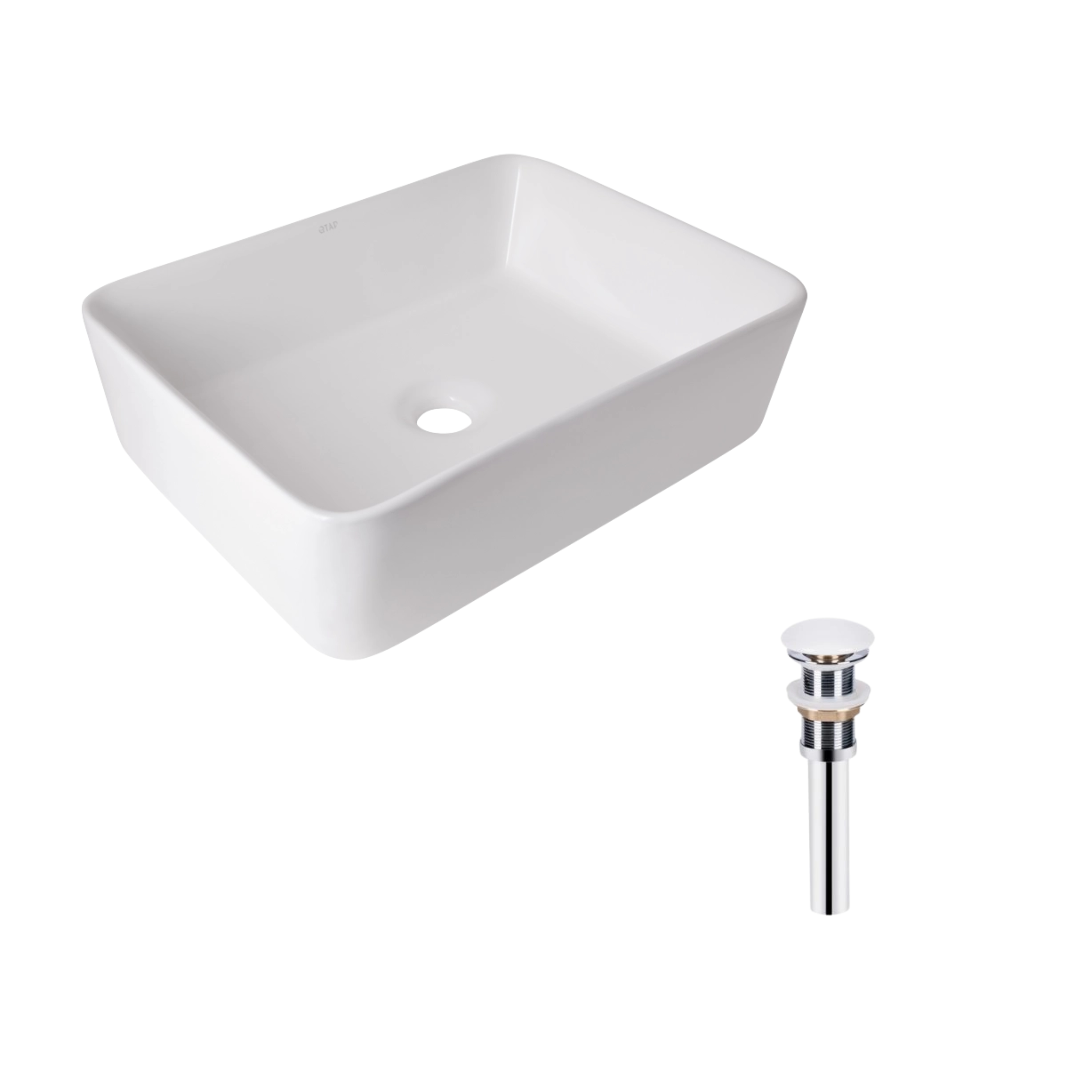 Комплект Qtap Tern: Раковина накладная прямоугольная 475х370х140 мм White + Донный клапан PU02
