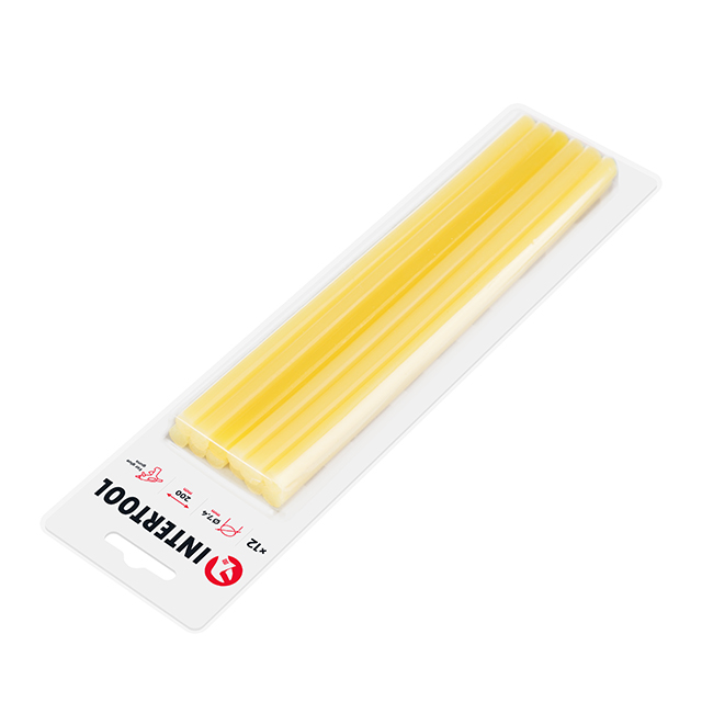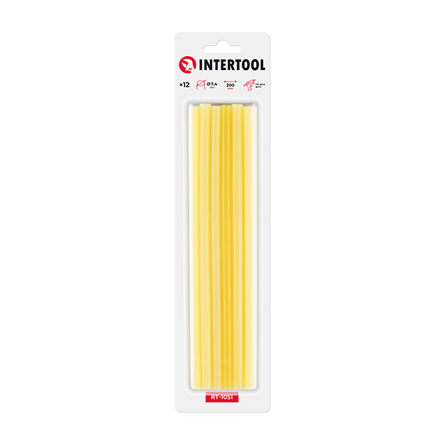 Опис Комплект жовтих клеєвих стержнів 7.4мм*200мм, 12шт. INTERTOOL RT-1051 код товару RT-1051