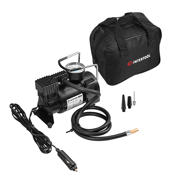 Компресор автомобільний 12 В, 14 А, циліндр 30 мм, макс. 7 бар, шланг 1 м, кабель живлення 3 м