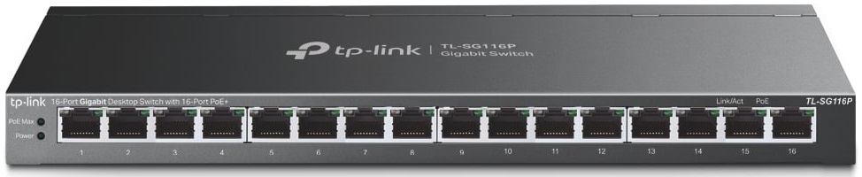 Опис Комутатор TP-LINK TL-SG116P 16xGE (16xPoE), 120Вт, Некерований код товару TL-SG116P