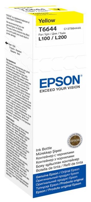 Характеристики Контейнер з чорнилом Epson T6644 EcoTank L110/L120/L121/L1300/L1455/L210/L300/L3050/L3060/L3070/L355/L382/L386/L486/L550/L605/L655/L364/L132/L222/L312/L366/L456/L566 yellow код товару C13T66444A