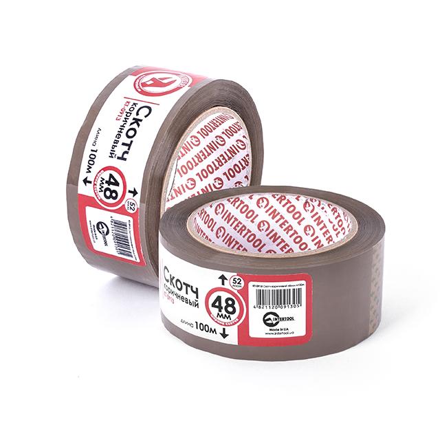 Характеристики Скотч коричневий 48 мм * 100 м * 52 мкм INTERTOOL KT-0913 код товару KT-0913