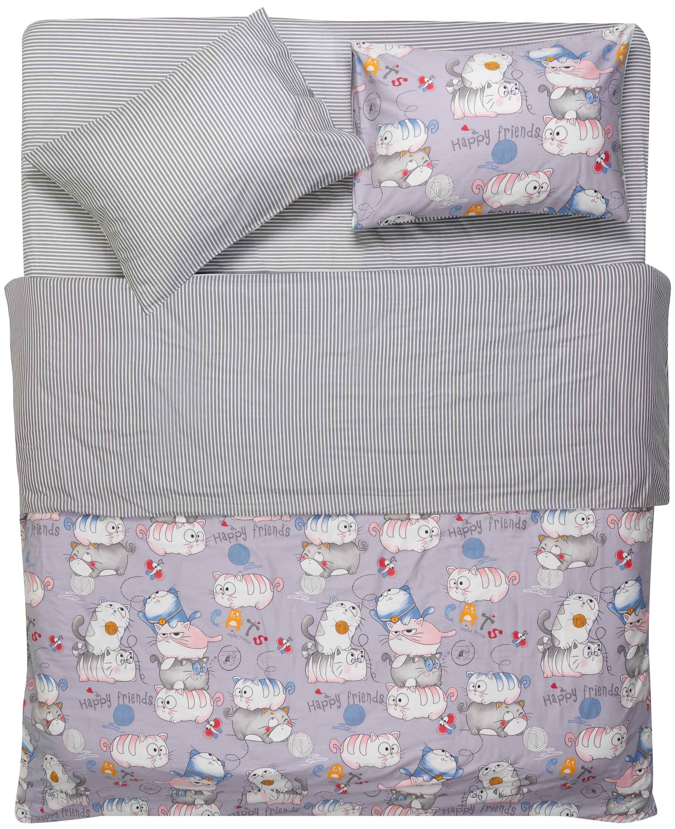 Опис КПБ 2,0сп ARDESTO Gloria, підковдра 200х220см, простирадло 230х240см, наволочки (2) 50х70см, 100% бавовна, сатин, веселі котики, сірий код товару ART2022FC