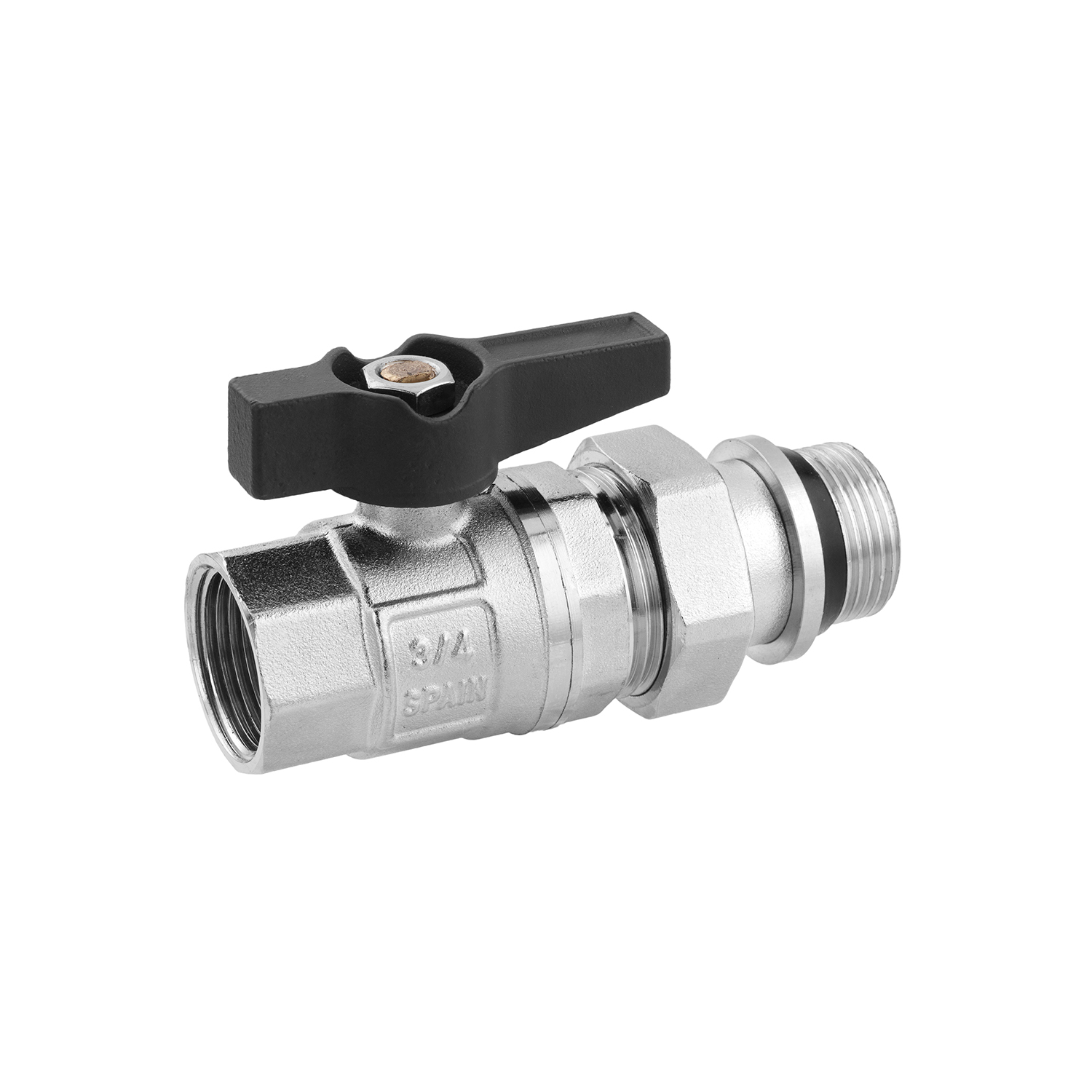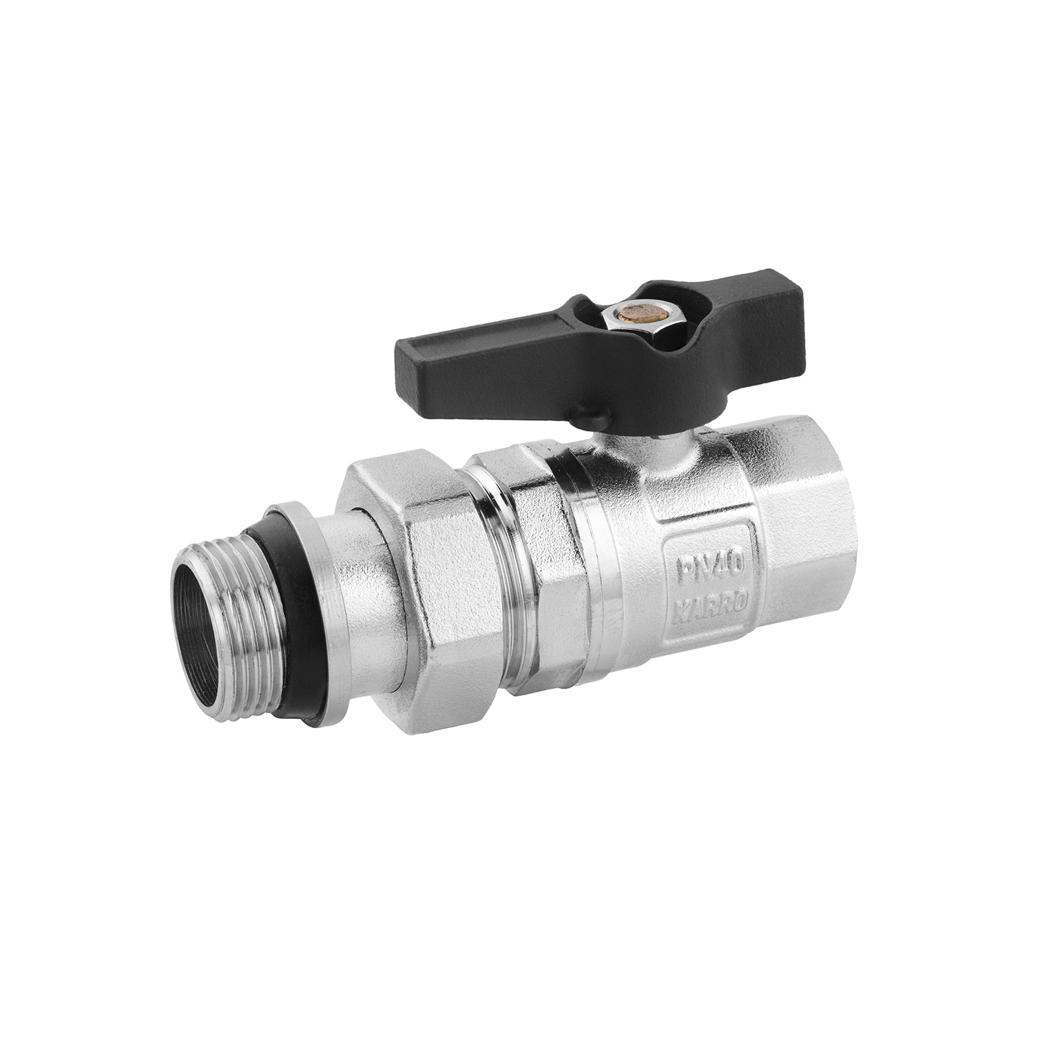 Кран-американка шаровой прямой с антипротеканием Karro "Uno Black" 3/4" ВН PN40, ручка «бабочка»