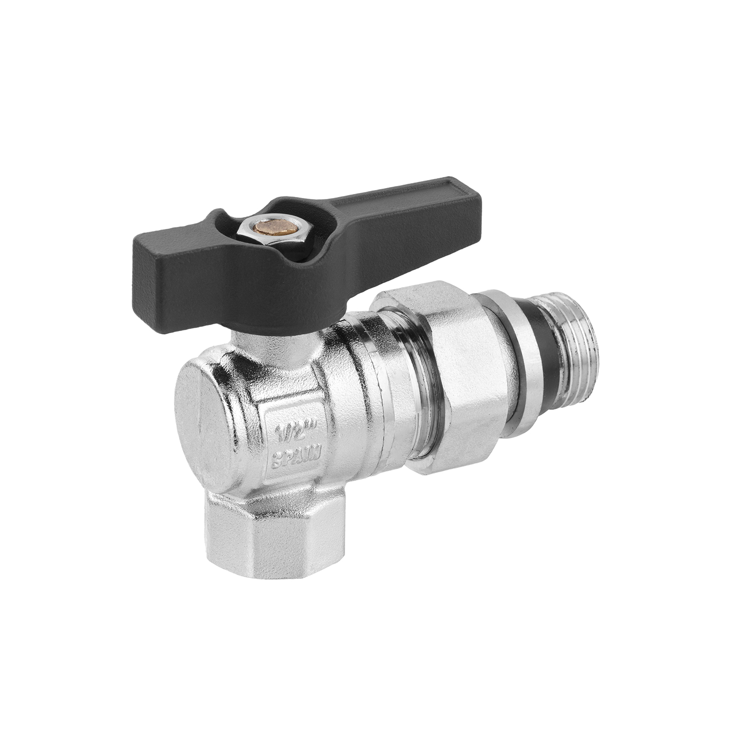 Кран-американка шаровой угловой с антипротечкой Karro UNO 1/2" ВН, PN40, ручка «бабочка»