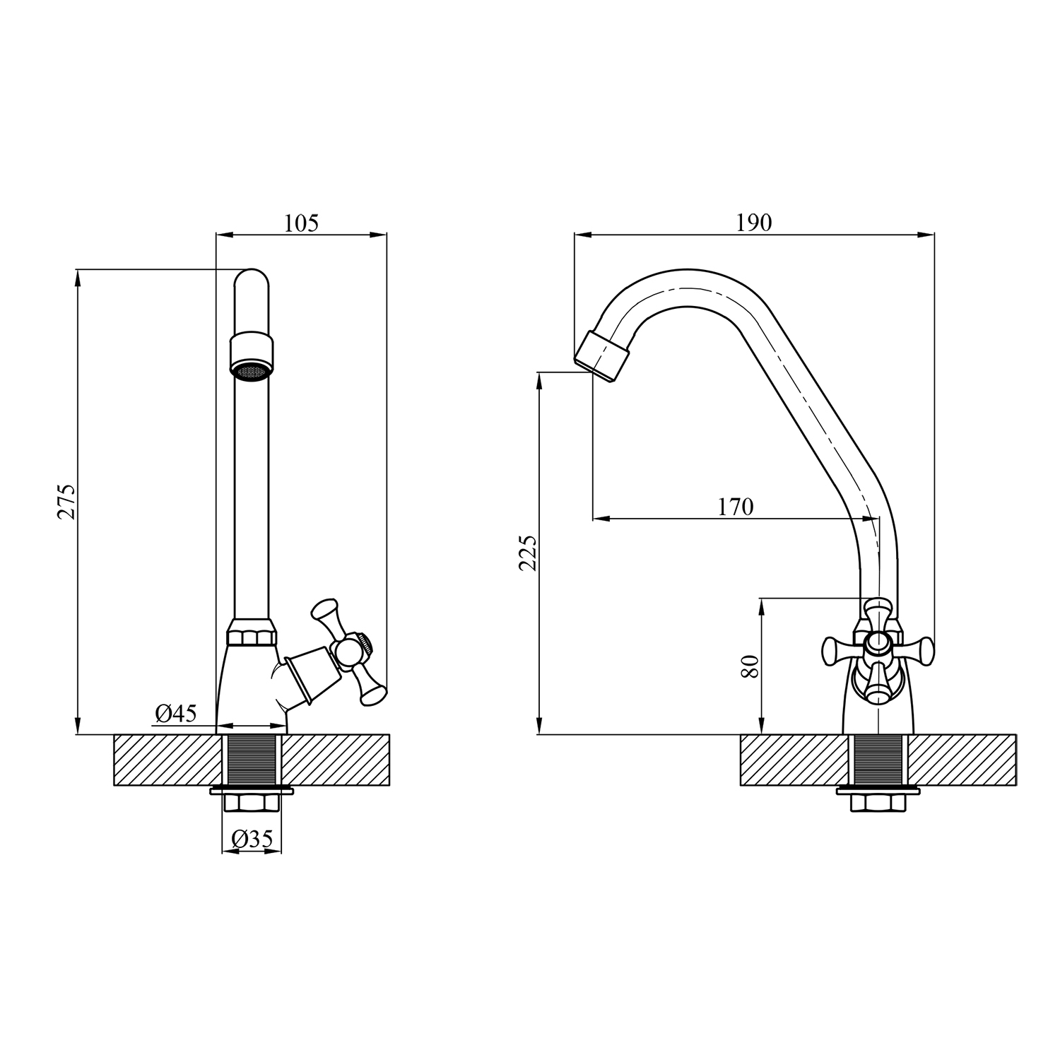Характеристики Кран на одну воду Kroner KRM Rhein - C091 код товару CV014917
