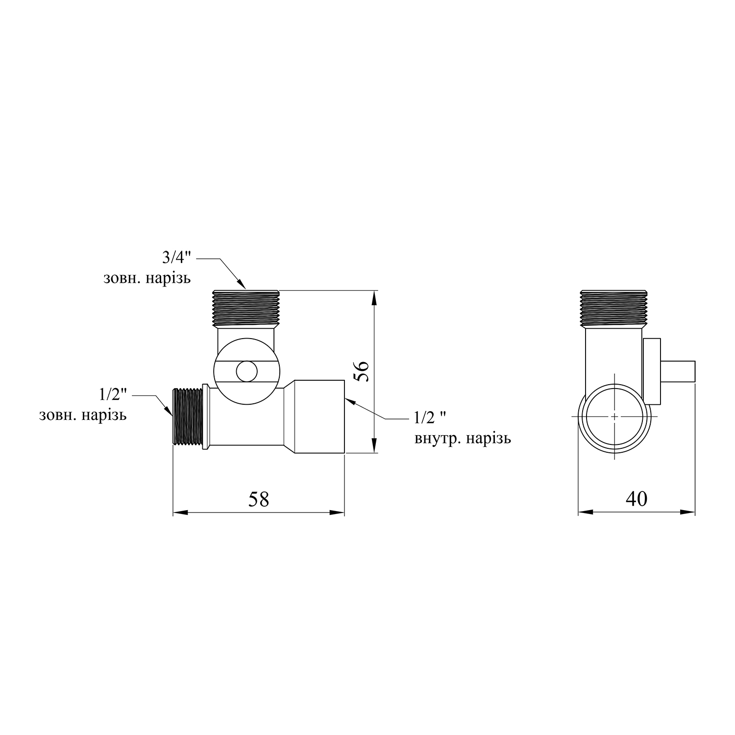 Характеристики Кран приборний 3-х ходовий Kroner KRP Eckventil C103 1/2''х3/4''х1/2'' ННВ код товару CV027378