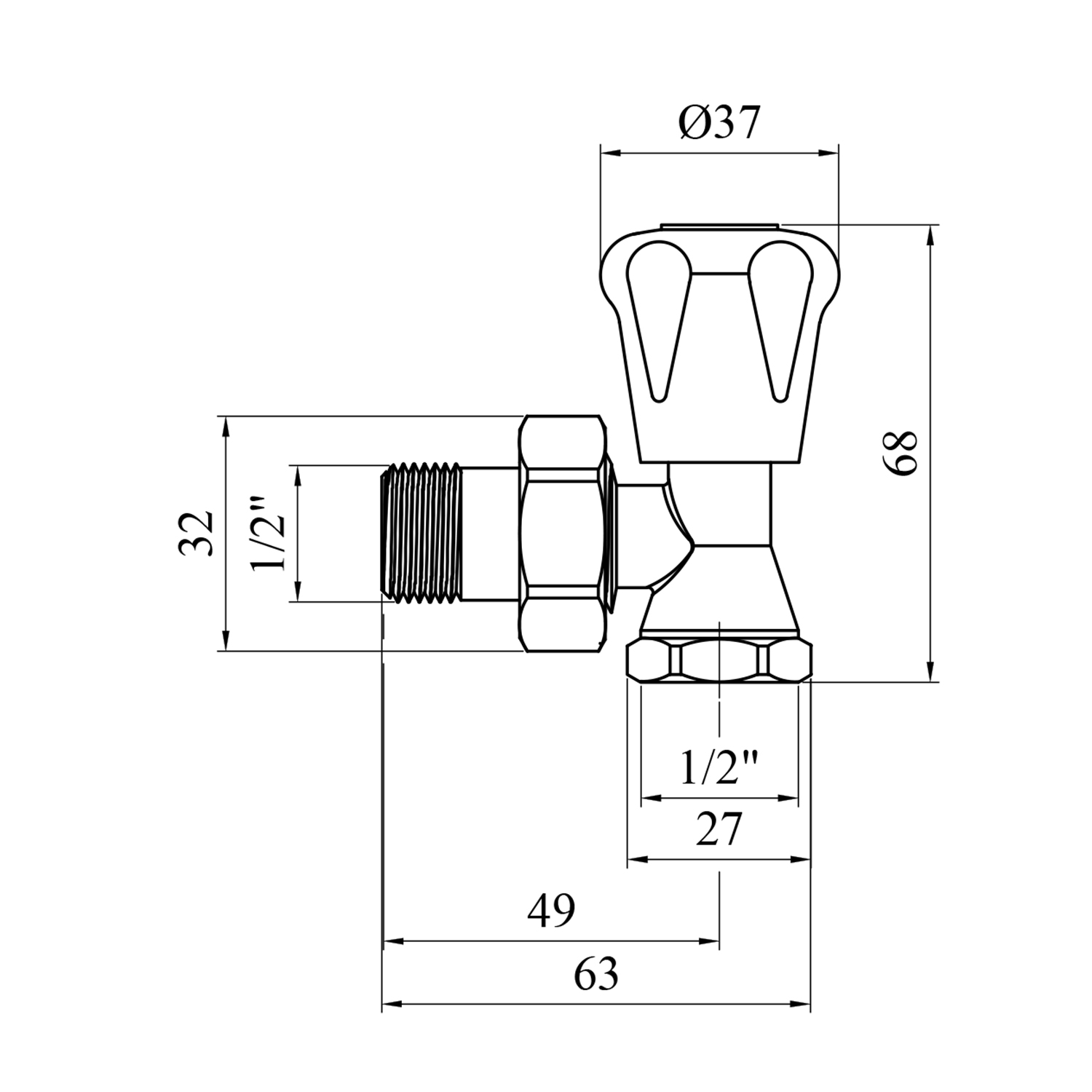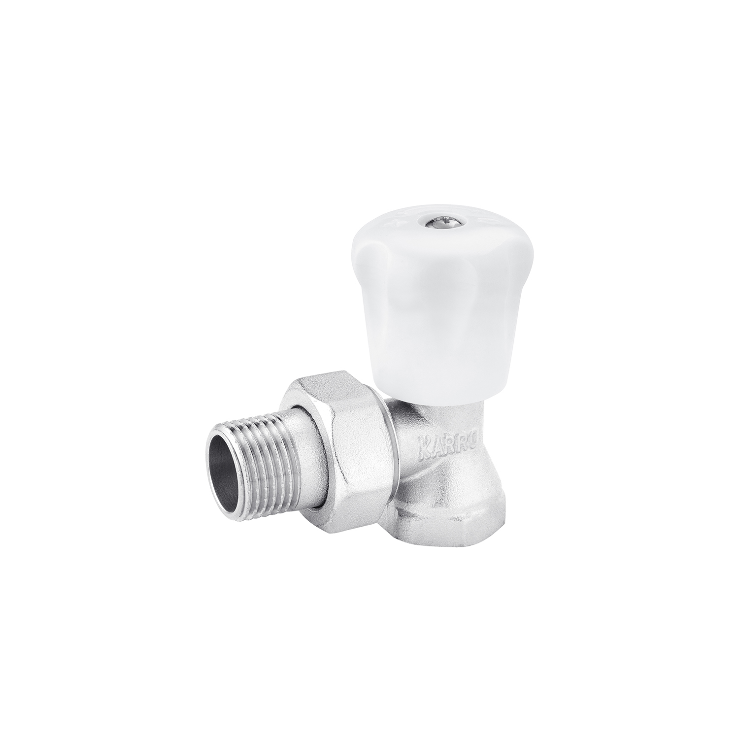 Опис Кран радіаторний верхній кутовий Karro 1/2 ВН нікельований KR-303 код товару CV008226
