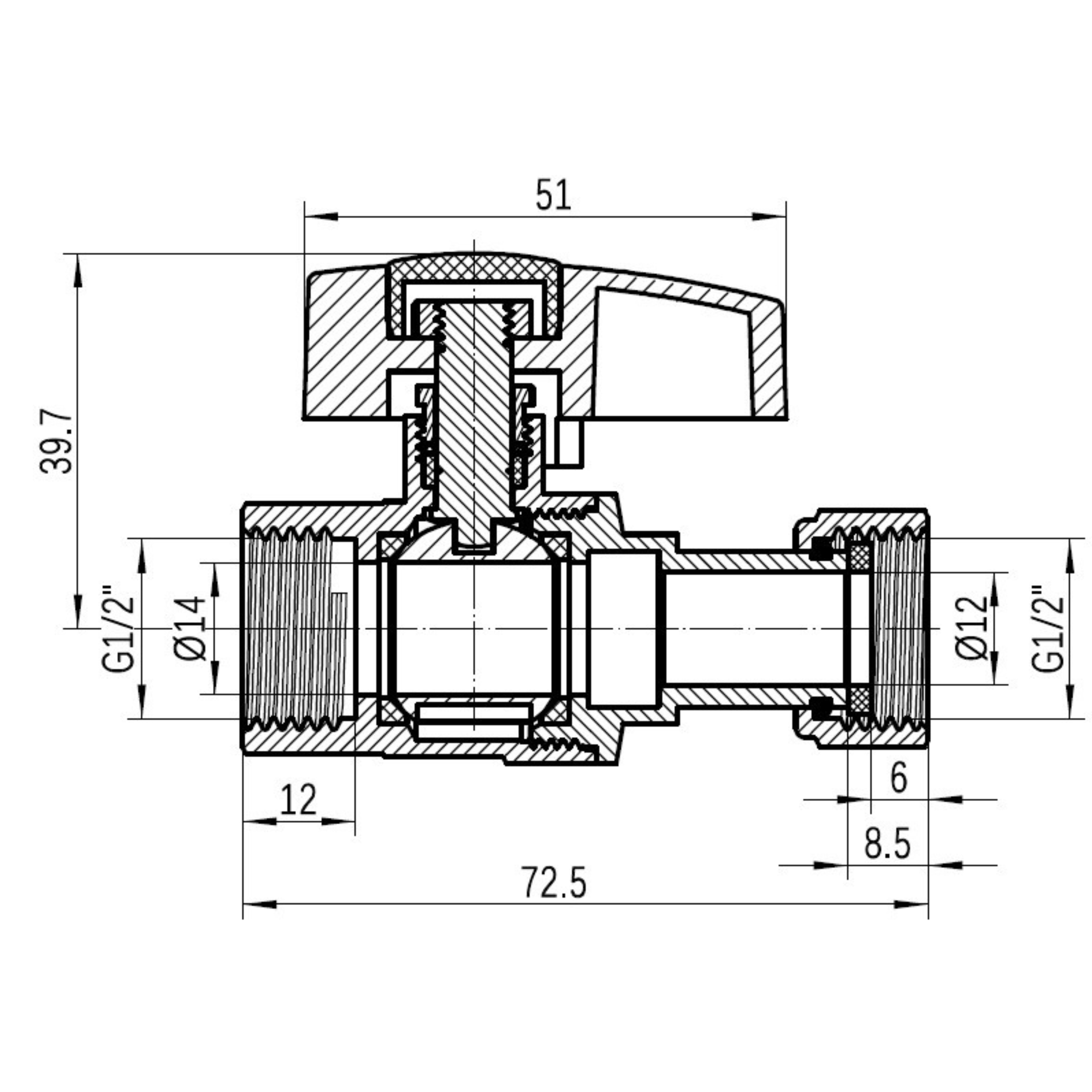 Характеристики Кран шаровой 1/2"ВВ прямой, PN40, с накидной гайкой Standart TAS260W15 Thermo Alliance код товару SD00054683