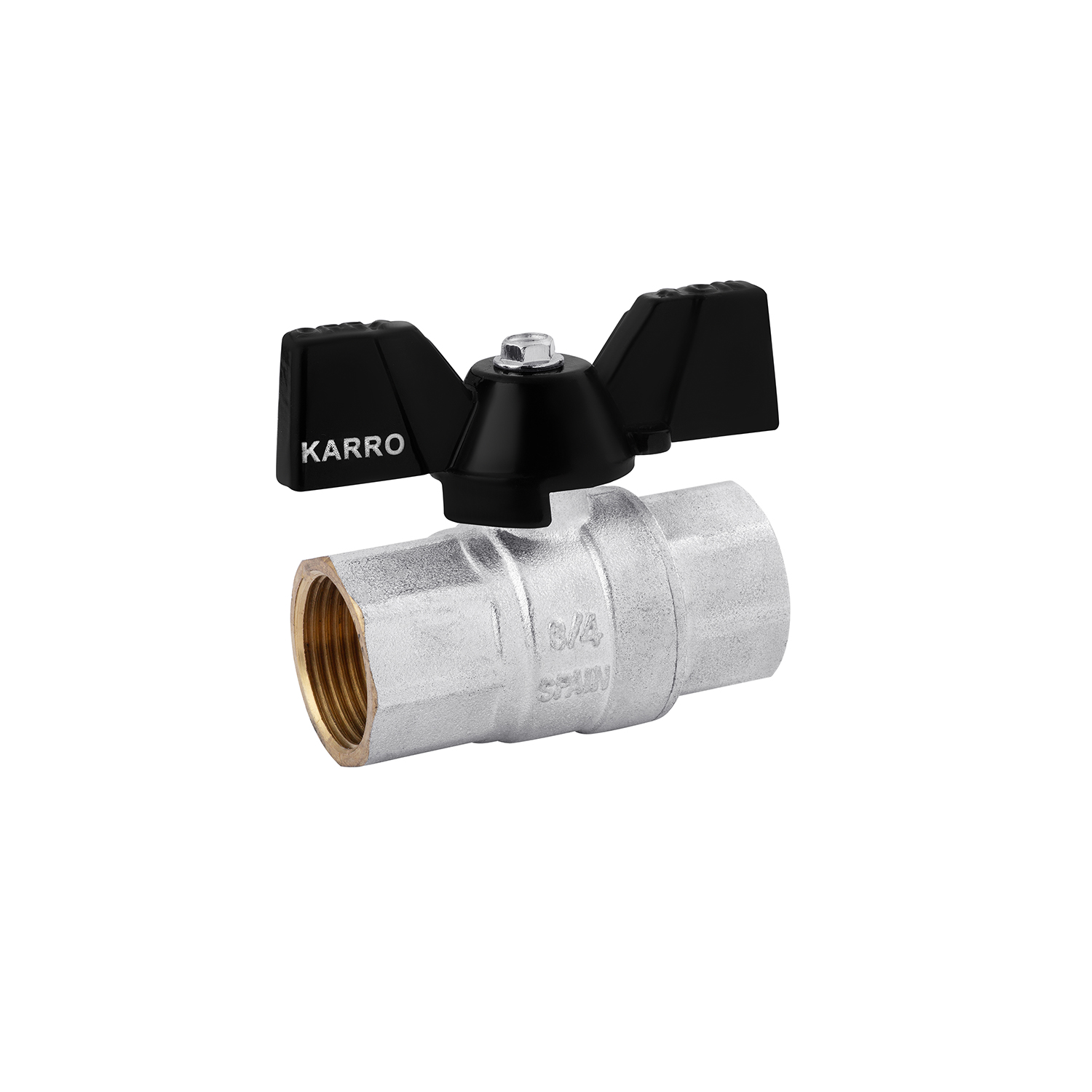Кран шаровий Karro Premium 3/4 ВВ PN40 бабочка, нікельований