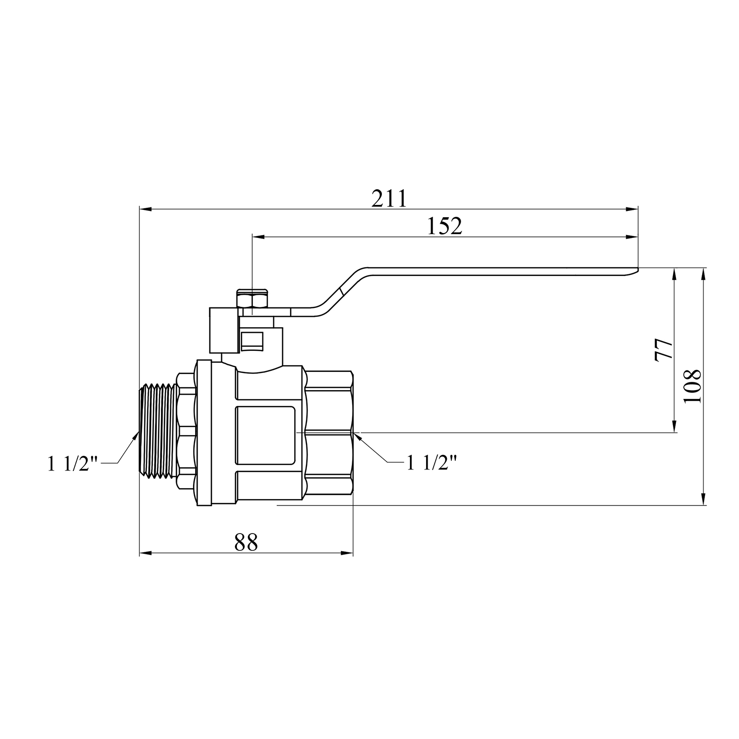 Характеристики Кран шаровий Karro Standart 1 1/2 ВН PN30 ручка, нікельований код товару CV021775