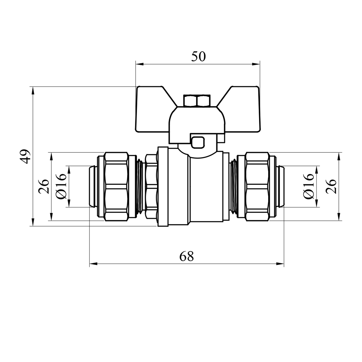 Кран шаровий металлопластиковий Karro 16х16 бабочка, нікельований