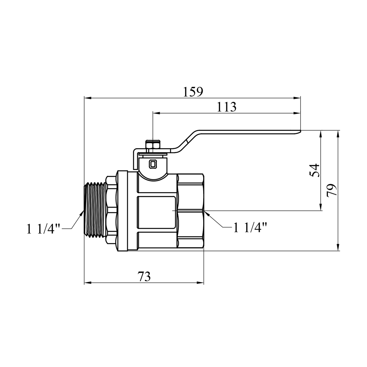 Характеристики Кран шаровий STA 1 1/4 ВН PN30 ручка, латунний код товару CV019182