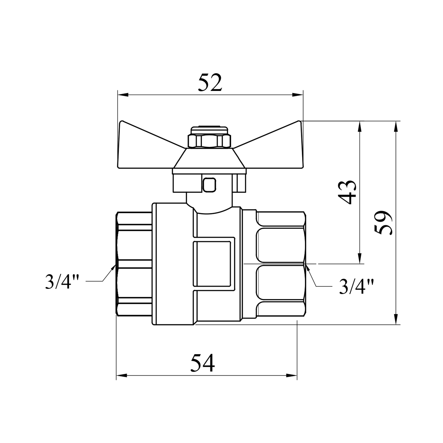Характеристики Кран шаровий STA Premium 3/4 ВВ PN40 бабочка, нікельований код товару CV014674