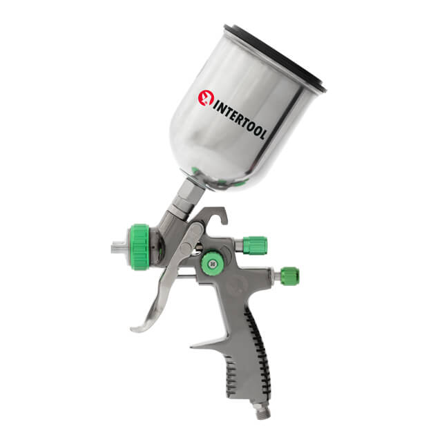 Характеристики Краскопульт пневматичний LVLP GREEN професійний, форсунка 1.3мм, верхній металевий бачок 600мл, 1.5бар INTERTOOL PT-0131 код товару PT-0131