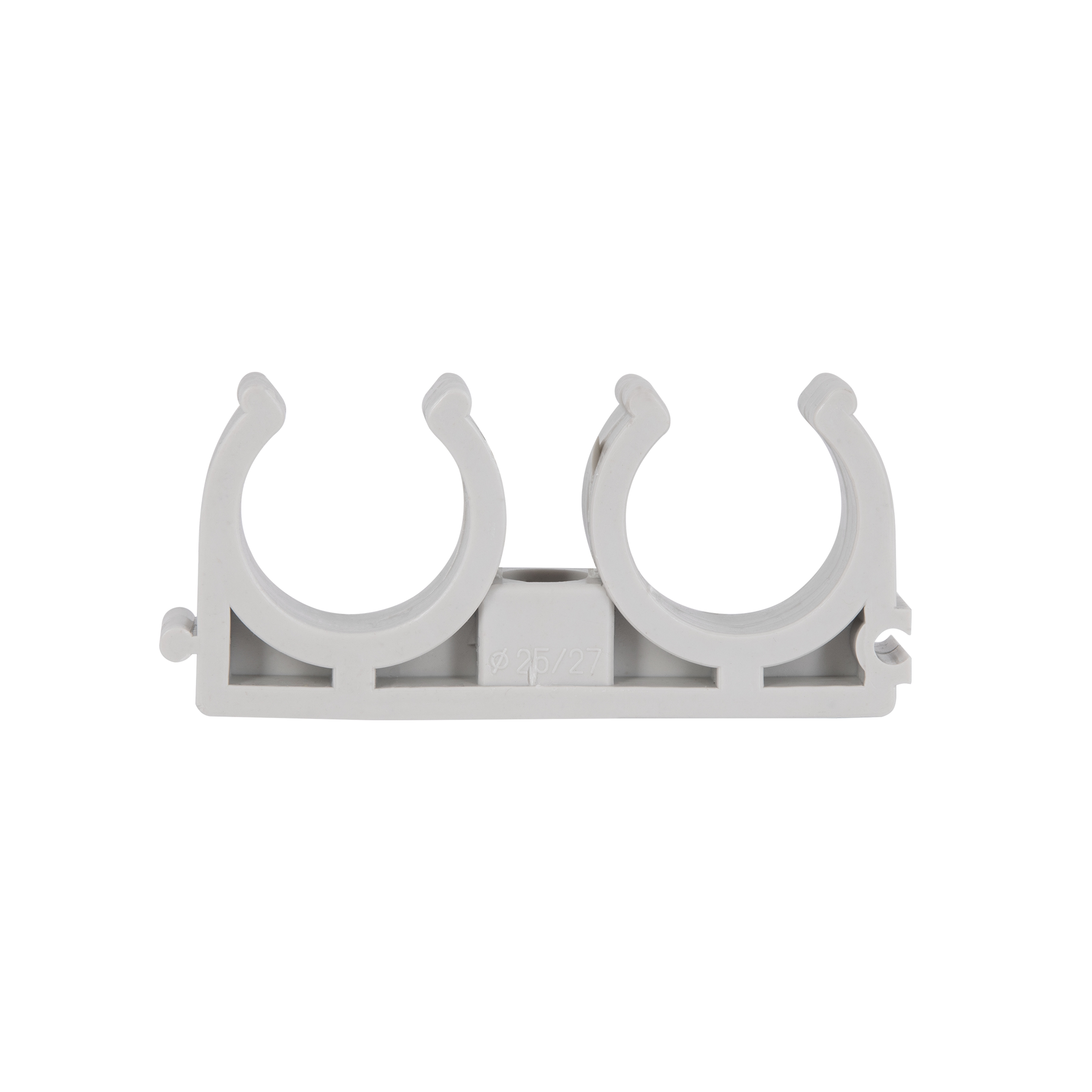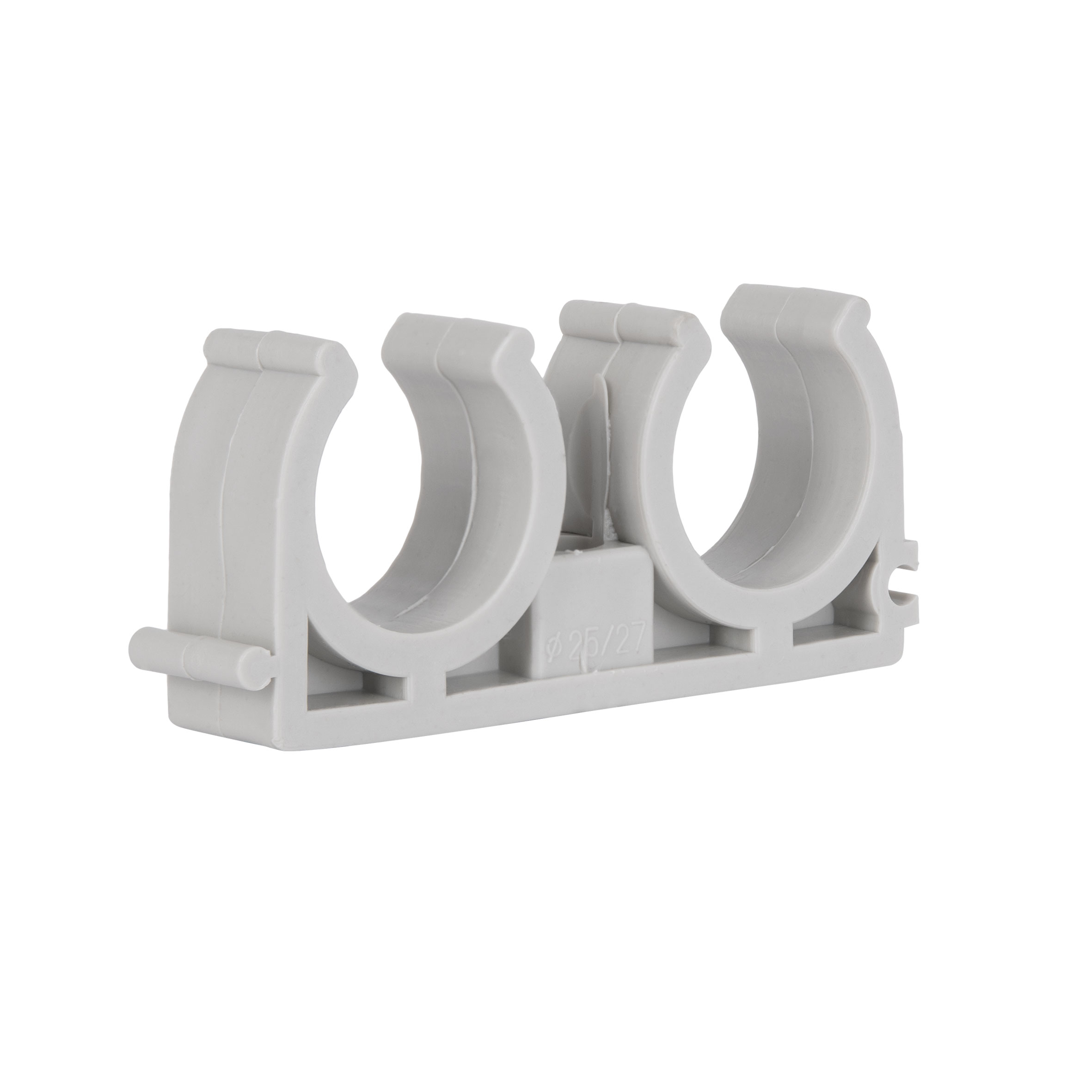 Двойной крепеж PPR Thermo Alliance 25 изготовлен из высококачественного полипропилена, благодаря чему термоустойчив и выглядит эстетично. Именно поэтому его чаще применяют во время монтажа водопровода с горячей и холодной водой. Крепеж состоит из плоского основания с отверстиями для шурупов и двух U-образных скоб для фиксации на стене труб диаметром 25 мм.