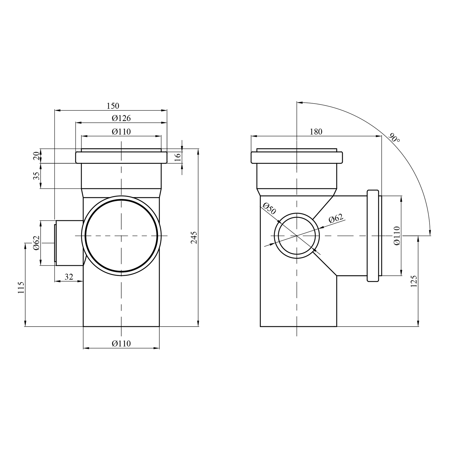 Опис Крестовина для внутрішньої каналізації Rozma 110х110х50/90° код товару CV027259