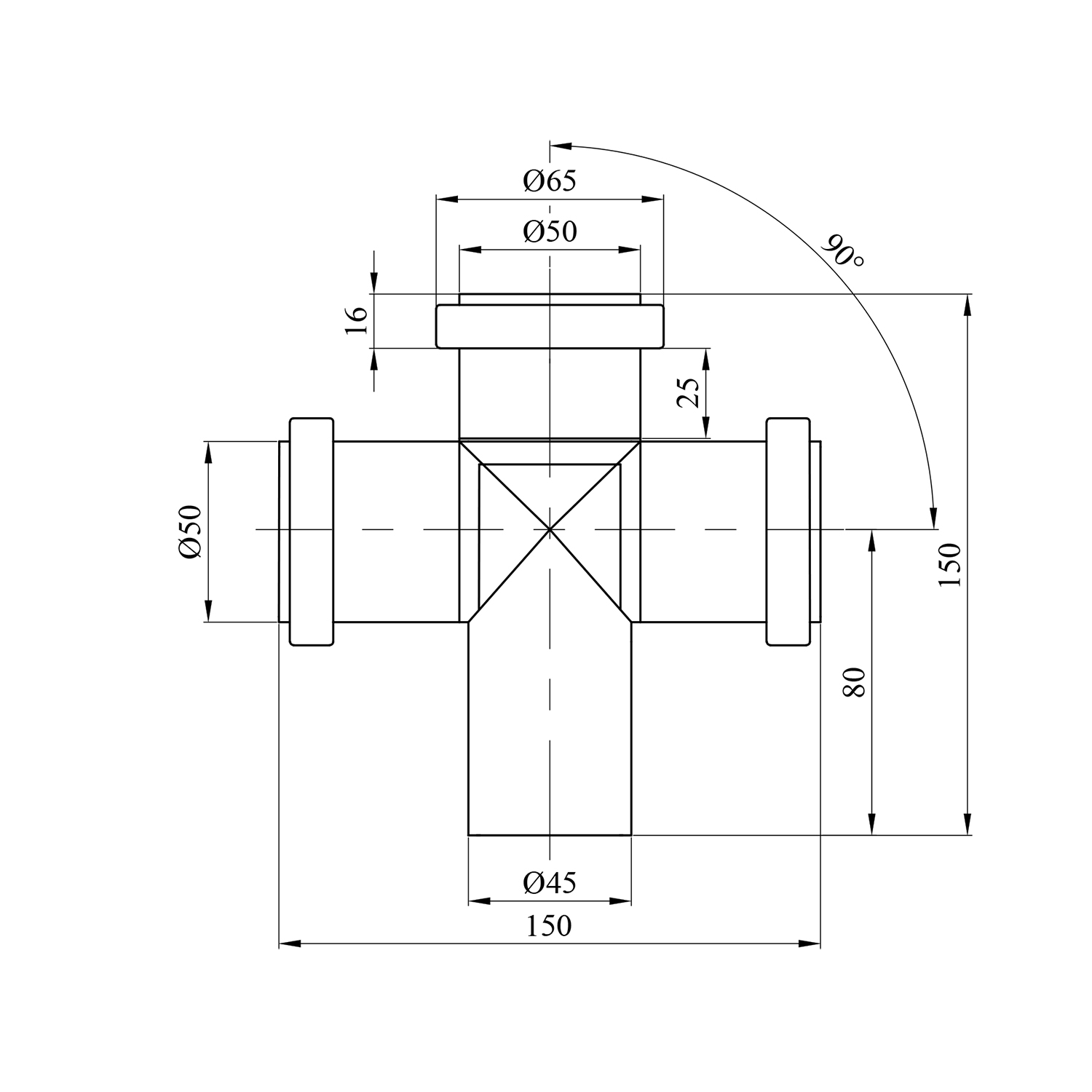 Опис Крестовина для внутрішньої каналізації Rozma 50х50х50/90° код товару CV010974