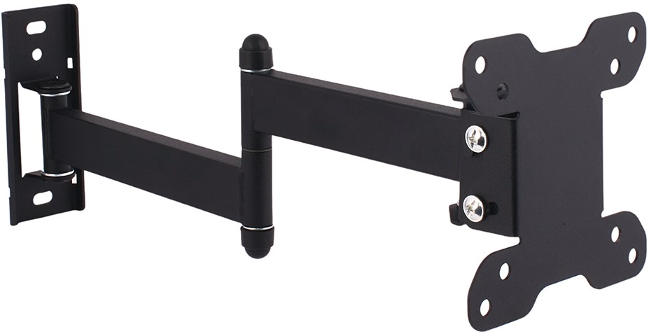 Настінний похило-поворотний кронштейн Simpler 13ET. Що потрібно знати, щоб правильно підібрати кронштейн до телевізора? Діагональ екрану, вага телевізора та стандарт кріплення VESA - відстань між кріпильними отворами на задній панелі телевізора. Всю цю інформацію ви легко знайдете в характеристиках вашого телевізора, на упаковці або в інструкції. Кронштейн підходить для плазмових, LCD, LED телевізорів і моніторів з діагоналлю 13-28 дюйма і вагою до 15 кг. Підтримуваний стандарт VESA: від 75×75 мм до 100×100 мм.