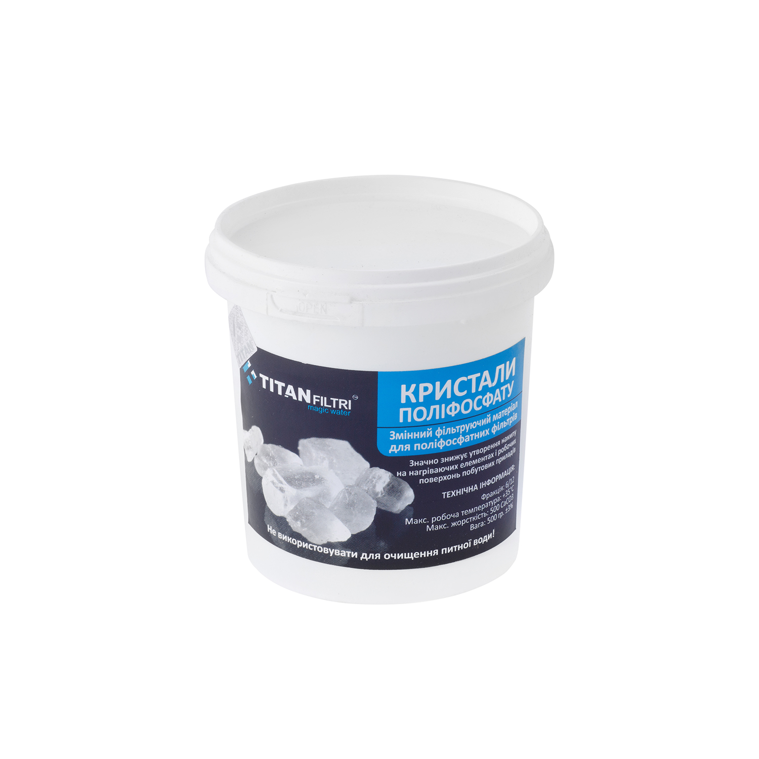 Кристали поліфосфату - це ваш надійний помічник у боротьбі з жорсткою водою. Вони ефективно захищають побутову техніку, продовжуючи її термін служби. Легко використовувати, просто додайте до фільтра Titan. Вода стане м'якшою, а ви забудете про накип. Не пропустіть можливість покращити якість води у вашому домі!