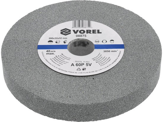 Характеристики Круг для точила VOREL : 200х31,75х30 мм (дрібнозернистий) [10] код товару 08875
