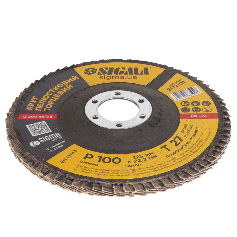 Опис Круг лепестковый торцевой Т27 (прямой) Ø125мм P100 SIGMA (9172101) код товару 9172101