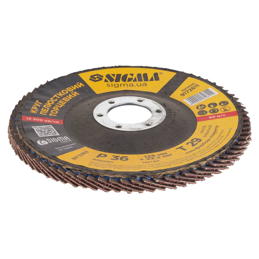Опис Круг лепестковый торцевой Т29 (конический) Ø125мм P36 SIGMA (9172611) код товару 9172611