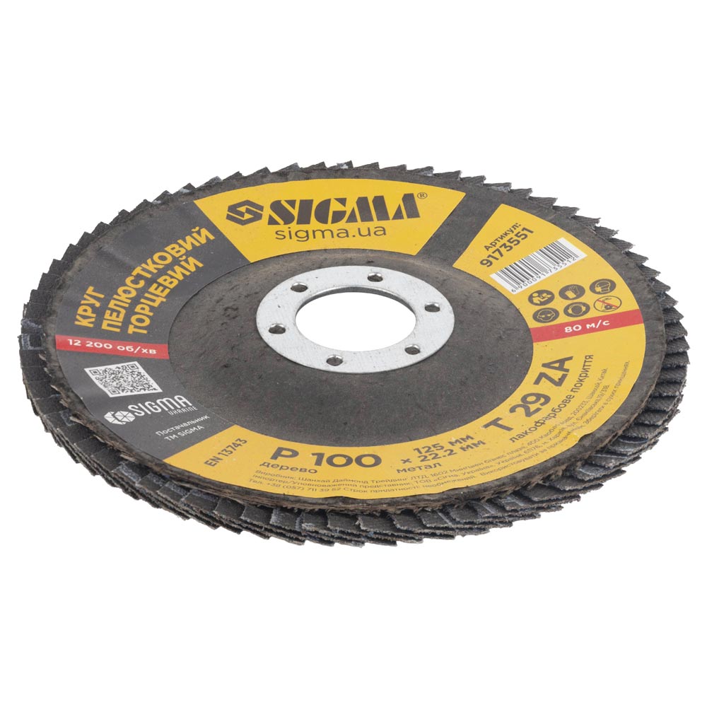 Опис Круг лепестковый торцевой Т29 (конический) ZA Ø125мм P100 SIGMA (9173551) код товару 9173551