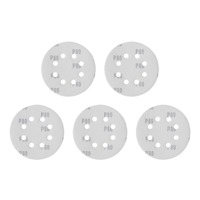 Характеристики Круг наждачний самоклеючийся 125мм з отворами, папір класу С, щільність 140 г/м², К80, уп. 5 ед INTERTOOL BT-0585 код товару BT-0585