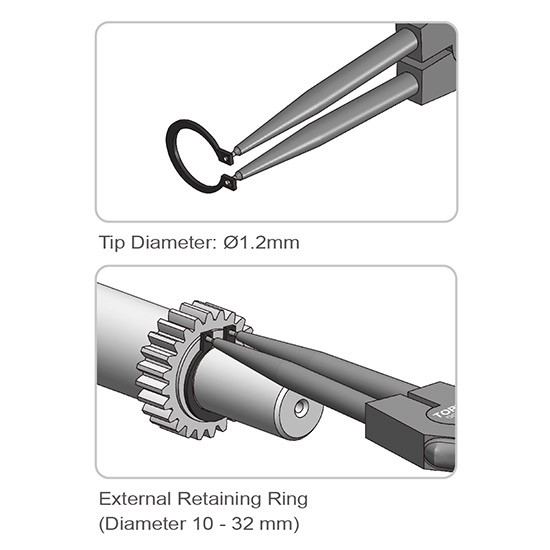 Характеристики Круглогубцы для снятия стопорных колец Extra Long (разжим прямые) TOPTUL DCBJ1381 код товару DCBJ1381