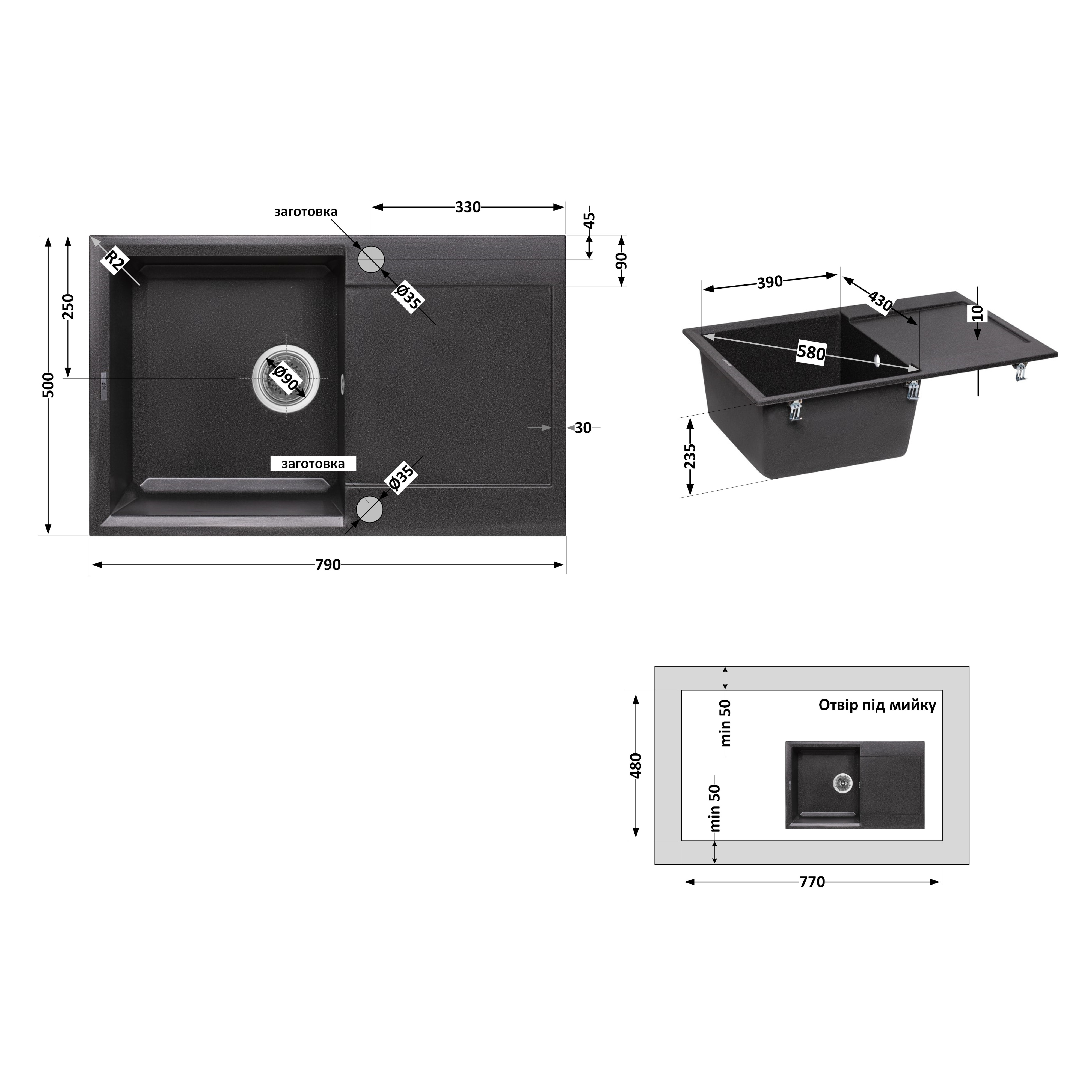 Характеристики Кухонна мийка Lidz 790x495/230 GRF-13 код товару SD00043314