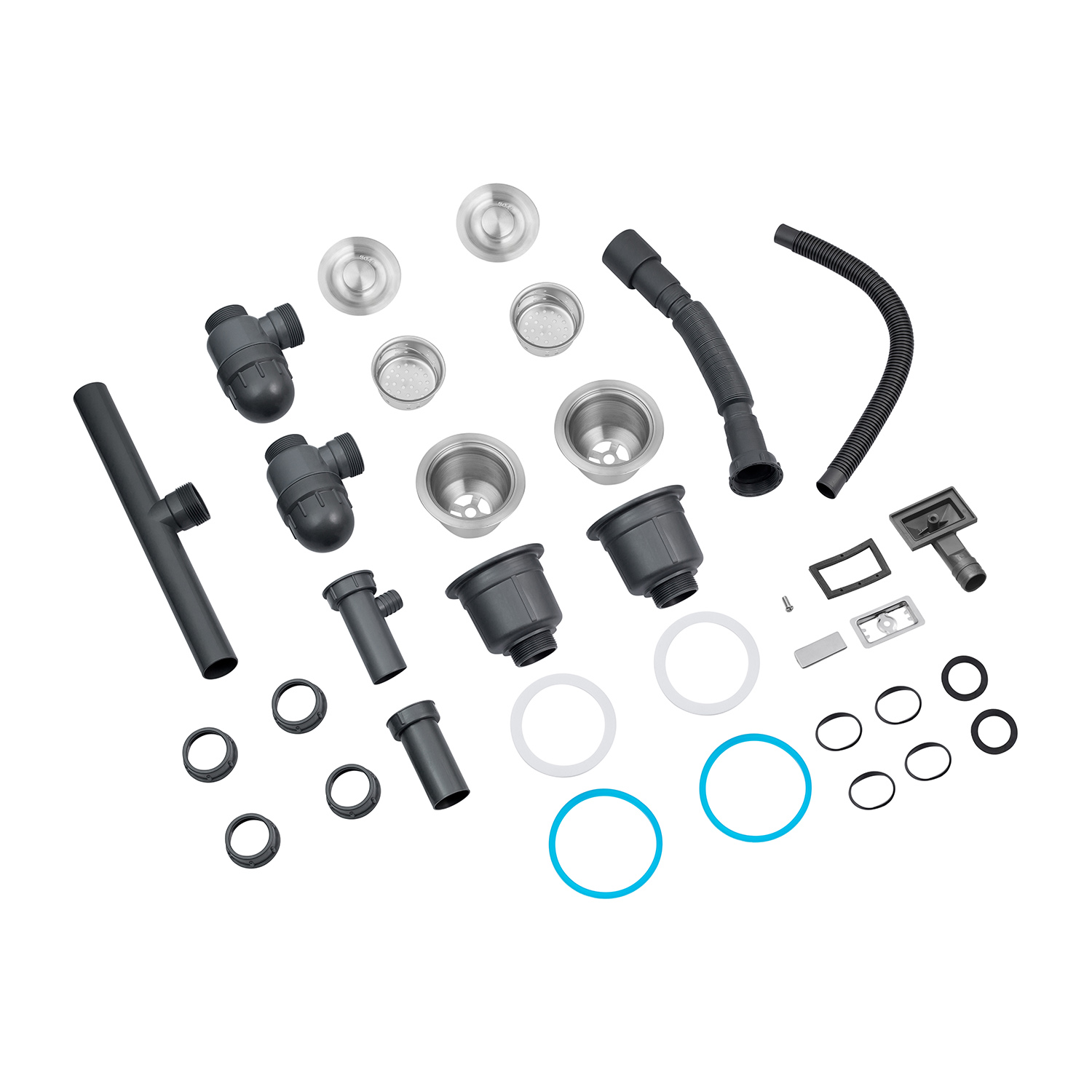 Мийка, сифон, слив-перелив, кошиковий вентиль, сушарка.