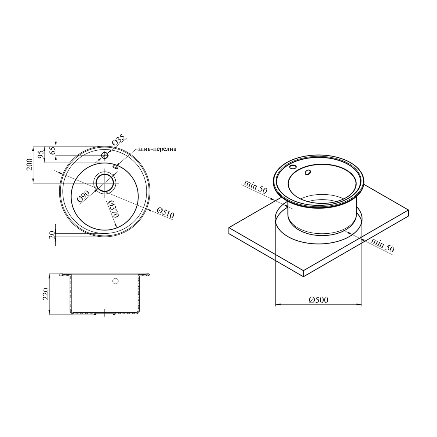 Розміри: 510 мм x 440 мм, глибина 200 мм.