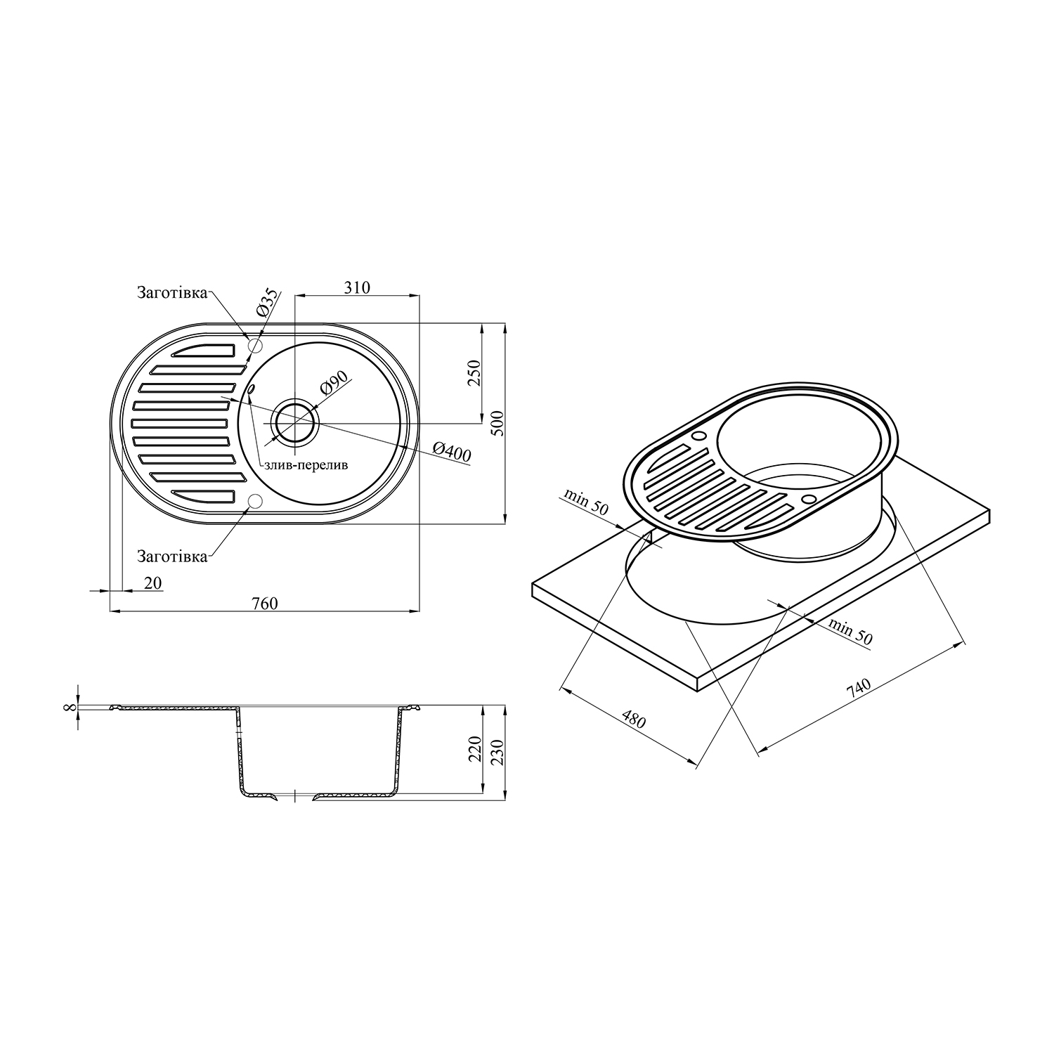 Характеристики Кухонна мийка Kroner KRP Композит GRB - 7750 код товару CV027420