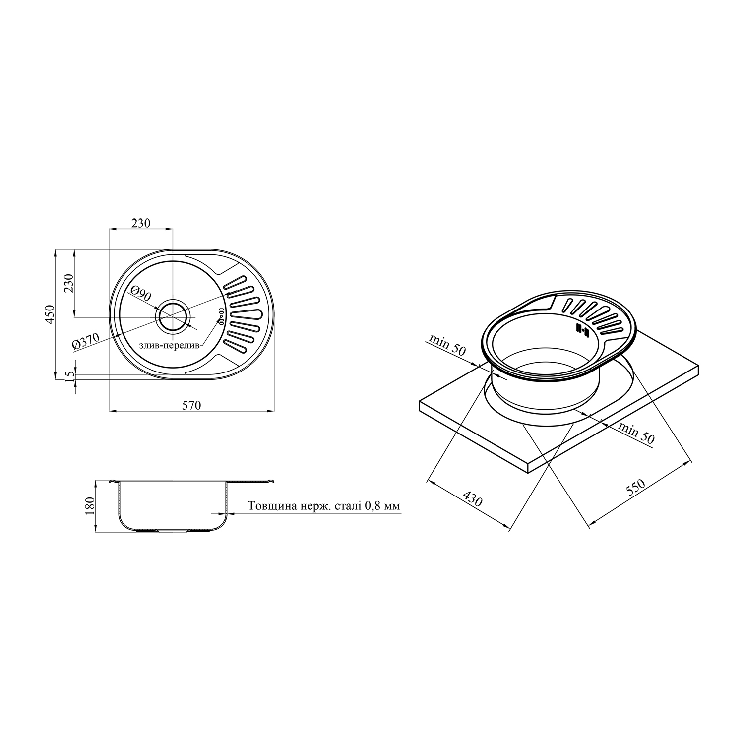 Характеристики Кухонна мийка Kroner KRP Satin - 5745 (0,8 мм) код товару CV022775