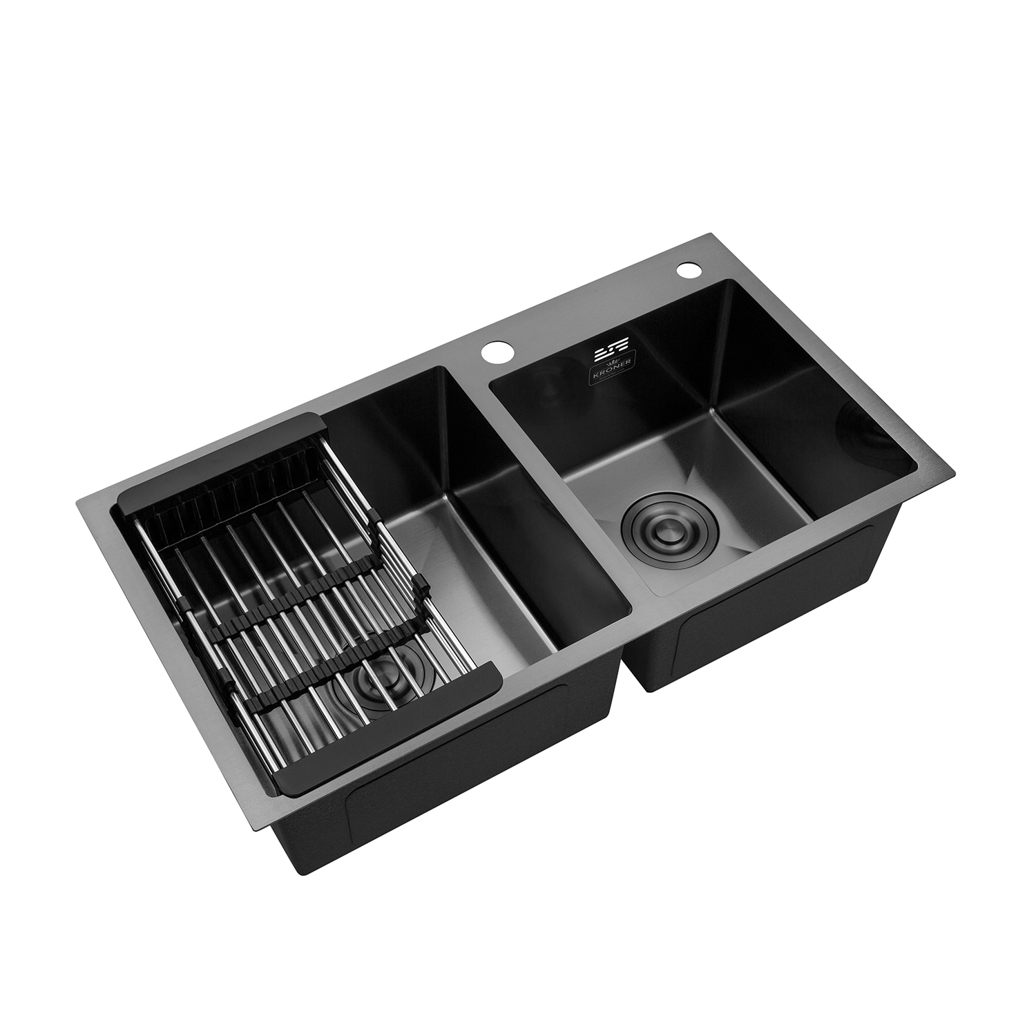 Опис Кухонна мийка Kroner KRP Schwarze - 7843ZHM PVD (3,0/1,0 мм) код товару CV022797
