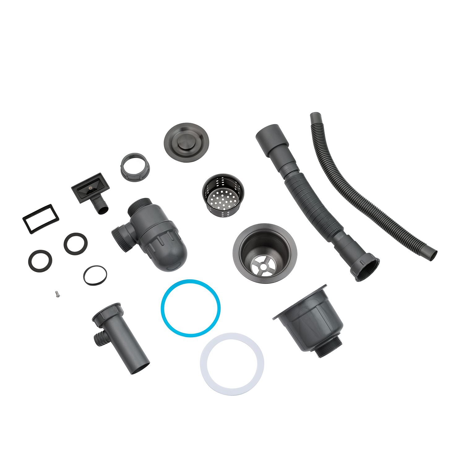 Мийка, сифон, слив-перелив, кошиковий вентиль, сушарка.