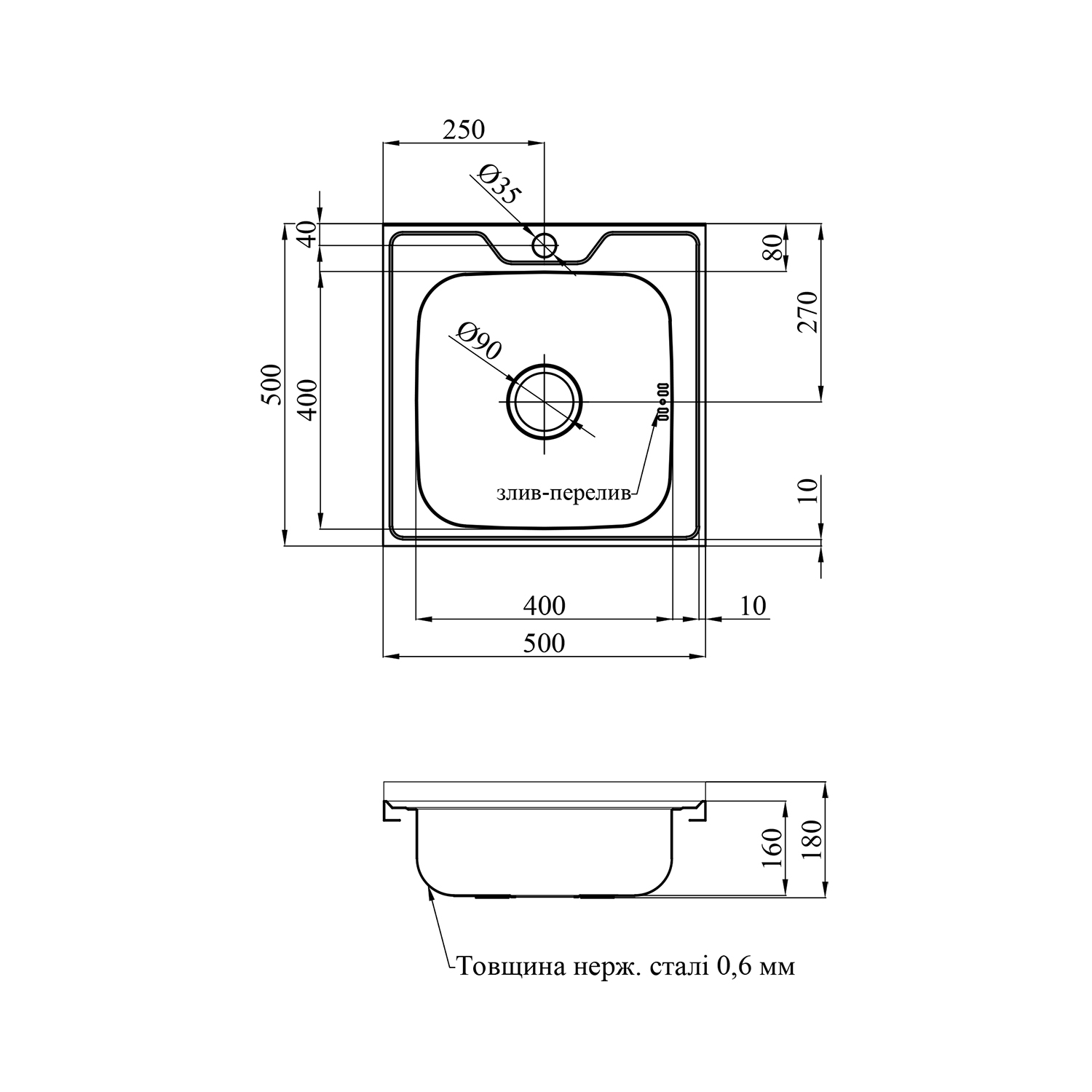 Опис Кухонна мийка накладна Kroner KRP Satin - 5050 (0,6 мм) код товару CV022819