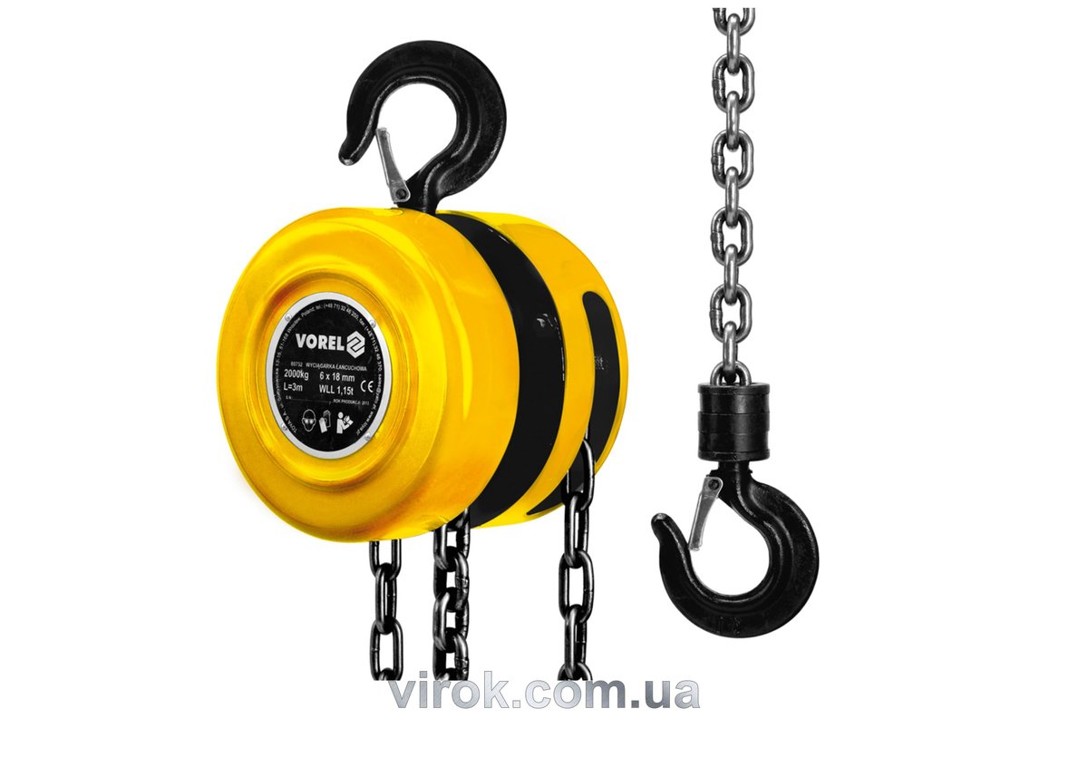 Опис Лебідка ланцюгова VOREL : 2 т, L= 3 м [1/64] код товару 80752