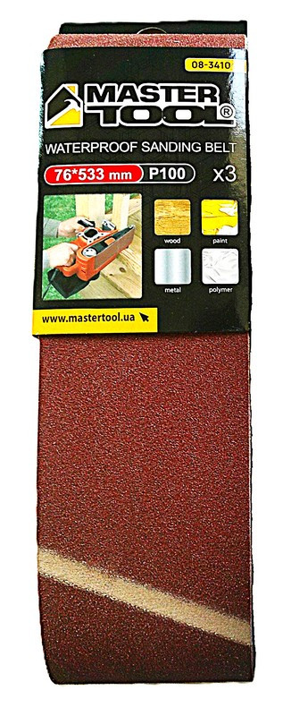Опис Лента шлифовальная MASTERTOOL зерно 100 76×533 мм 3 шт 08-3410 код товару 08-3410