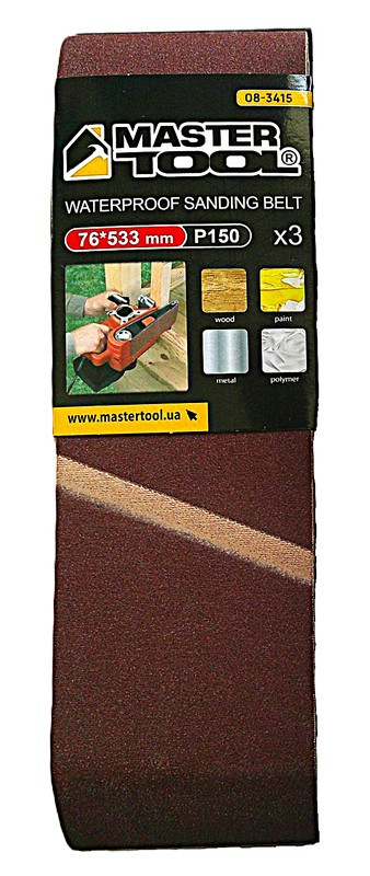 Опис Лента шлифовальная MASTERTOOL зерно 150 76×533 мм 3 шт 08-3415 код товару 08-3415