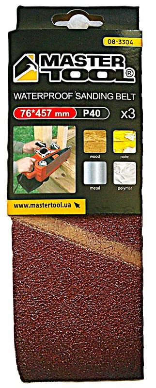 Опис Лента шлифовальная MASTERTOOL зерно 40 76×457 мм 3 шт 08-3304 код товару 08-3304