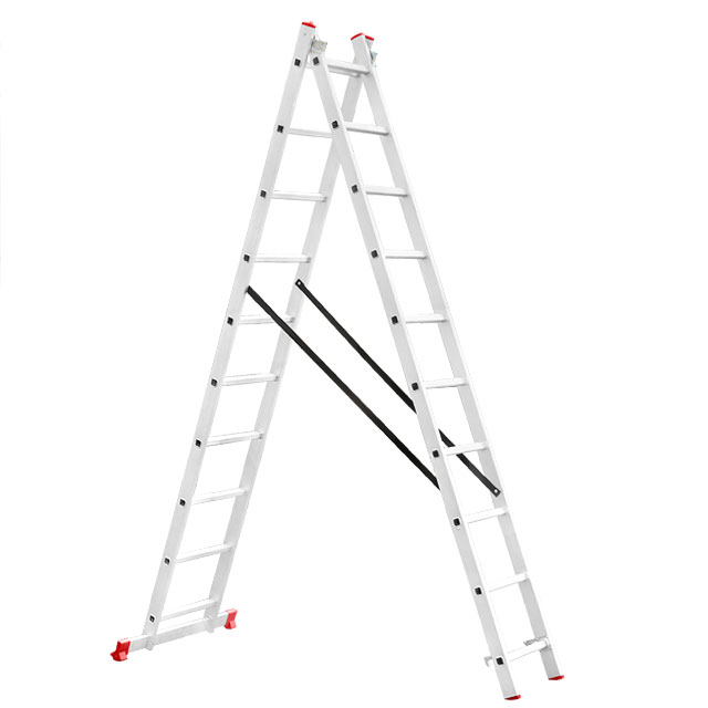 Опис Лестниця алюмінієва 2-х секційна універсальна розкладна 2x10 ступ. 4,8 м INTERTOOL LT-0210 код товару LT-0210