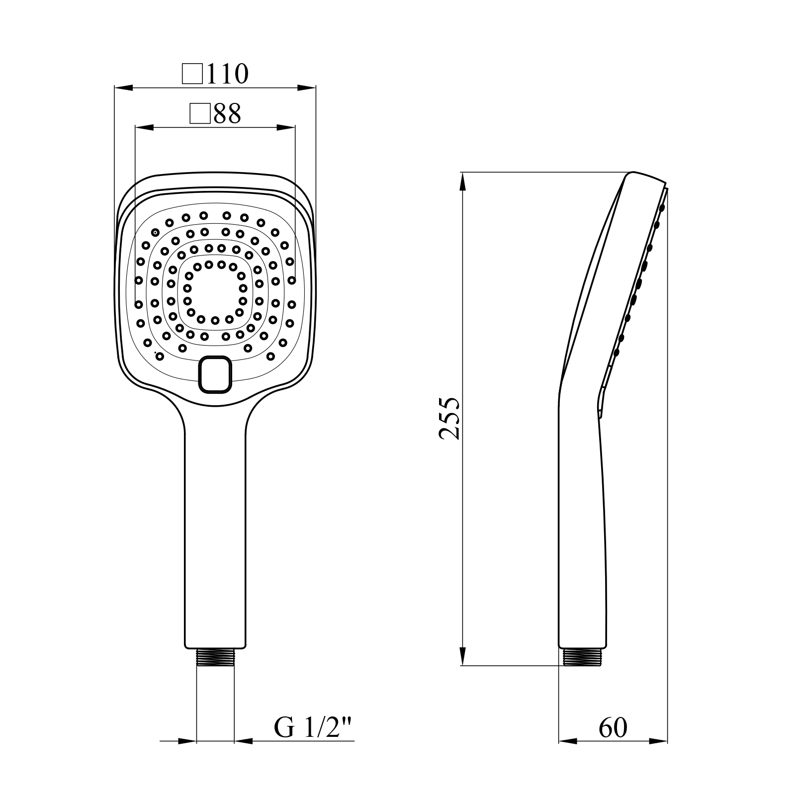 ABS-пластик с двухслойным никель-хромовым покрытием, подключение 1/2", квадратная форма.