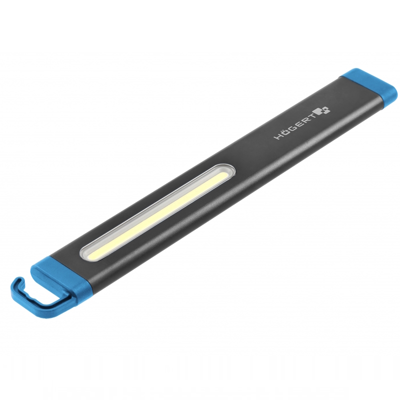 Плоска робоча лампа для освітлення вузьких місць, ідеально підходить для механіків, електриків, сантехніків і прихильників DIY. Оснащена яскравими та енергоощадними світлодіодами. Два рівні інтенсивності світла дозволяють пристосувати лампу до різних умов роботи. Функція миготливого світла дає змогу використовувати лампу як сигнальний пристрій, наприклад, для позначення автомобіля, що стоїть на дорозі в темряві. Має функцію плавного регулювання яскравості — утримання кнопки зменшує інтенсивність світла, відпускання фіксує обраний рівень. Потужний магніт і гачок для підвішування дозволяють звільнити руки під час роботи. Індикатор рівня заряду активується під час натискання кнопки. Лампа живиться від якісного, ємного літій-іонного акумулятора, який заряджається через порт USB-C. Пристрій має захист від потрапляння води відповідно до стандарту IPX4. Легка та компактна конструкція забезпечує зручне перенесення й зберігання. Поверхня корпусу стійка до забруднень і гарантує надійне утримання в руці.