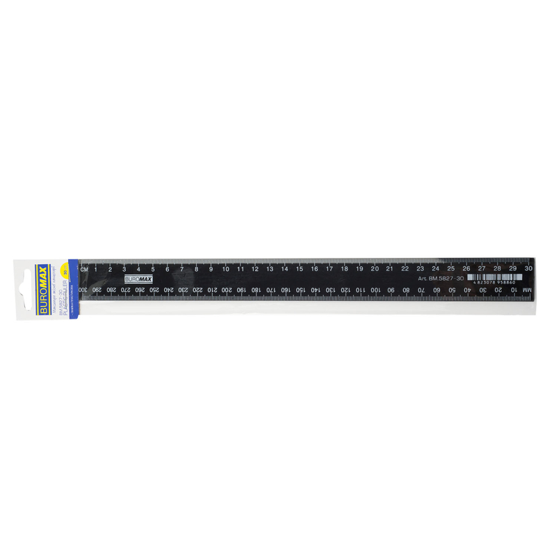 Характеристики Лінійка пластикова, 30 см, чорна, в пласт.пакеті з карт.підвісом 30 (Im-off) код товару BM.5827-30