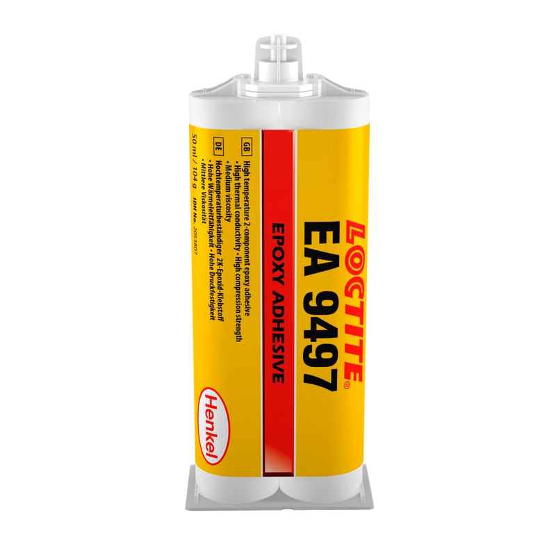 LOCTITE® EA 9497 - 2K високоефективний епоксидний клей для конструкційного склеювання сірого кольору. Його температурна стійкість (до 180 ° C) дозволяє використовувати клей для склеювання та заливання за високої температури. Після затвердіння клей теплопровідний та має високу міцність на стиск. Ідеальний для склеювання металевих компонентів.